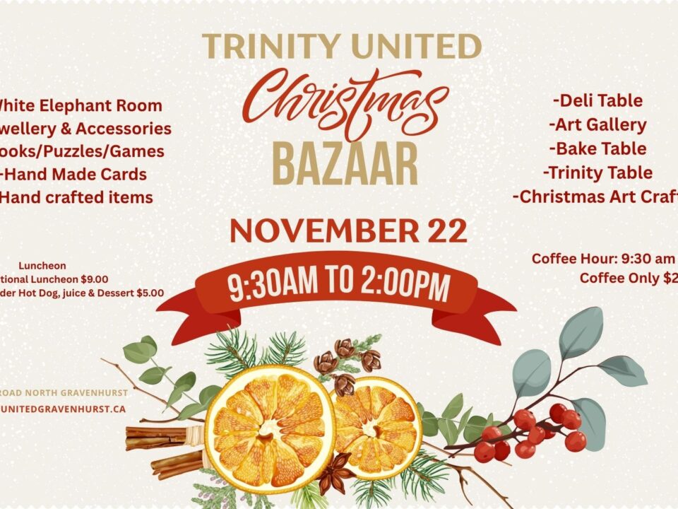 We are also deeply committed to outreach and social justice. Trinity is proud to be the home of Gravenhurst Against Poverty (G.A.P.), and we support a variety of organizations working to build a more compassionate and equitable world.